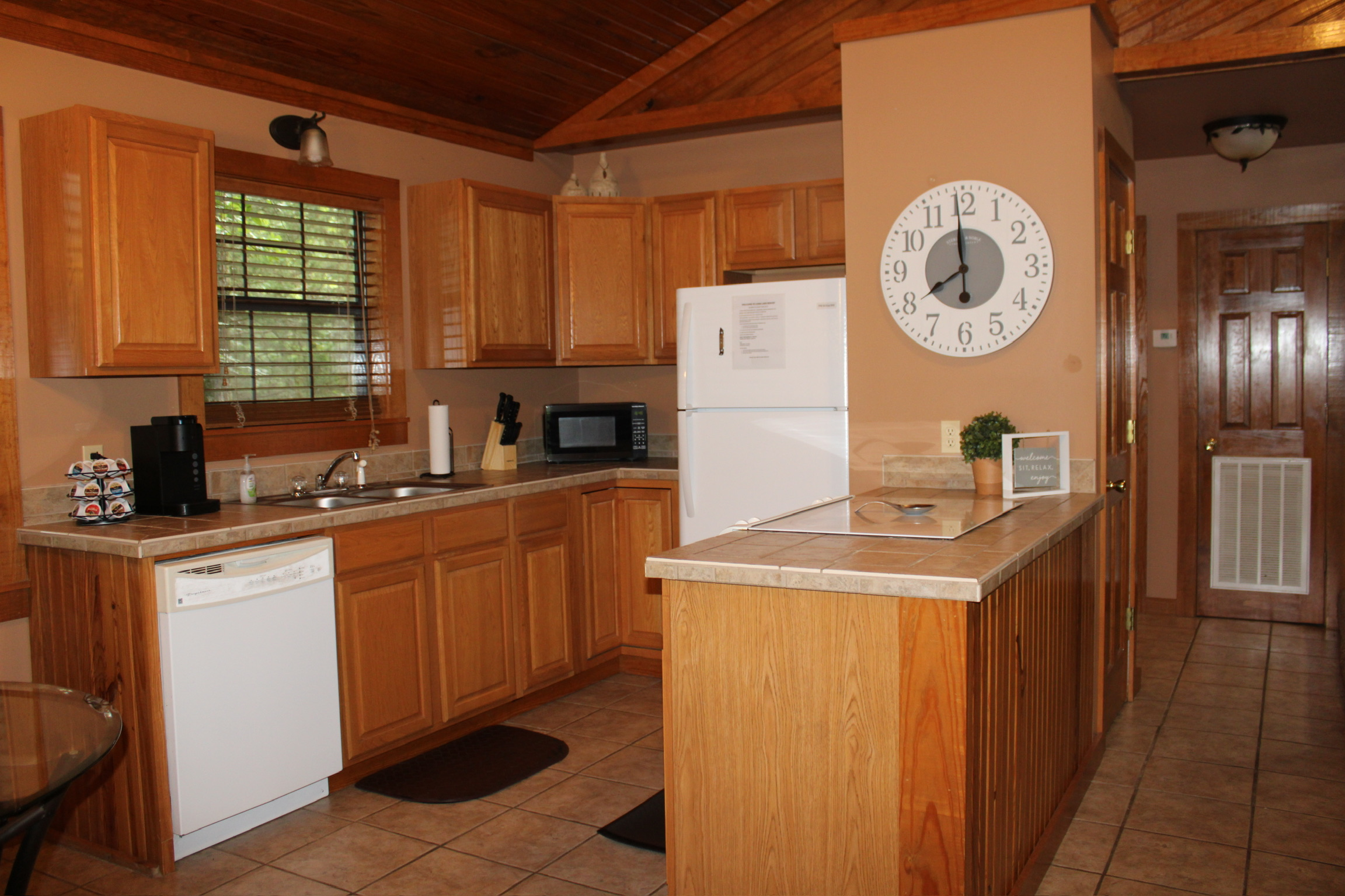 Inside, every detail invites you to unwind. The king-size bed is plush and inviting, the fireplace adds a cozy glow, and the full kitchen makes it easy to cook a meal together. The highlight? A private jacuzzi tub—perfect for unwinding after a day of fishing, hiking, or simply being still.